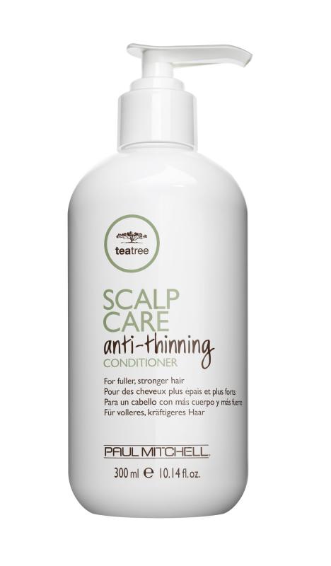 TEA TREE Scalp Care Anti-Thinning Conditioner från Paul Mitchell är ett viktlöst balsam som reder ut fina och sköra hårtyper. Den innehåller ett exklusivt Regeniplex® aktiv ingredienskomplex som består av gröna plommon, ärtpeptider, extrakt från röd kryddnejlika, gurkmeja och ginseng som ökar volymen för fylligare, mer motståndskraftig hår.