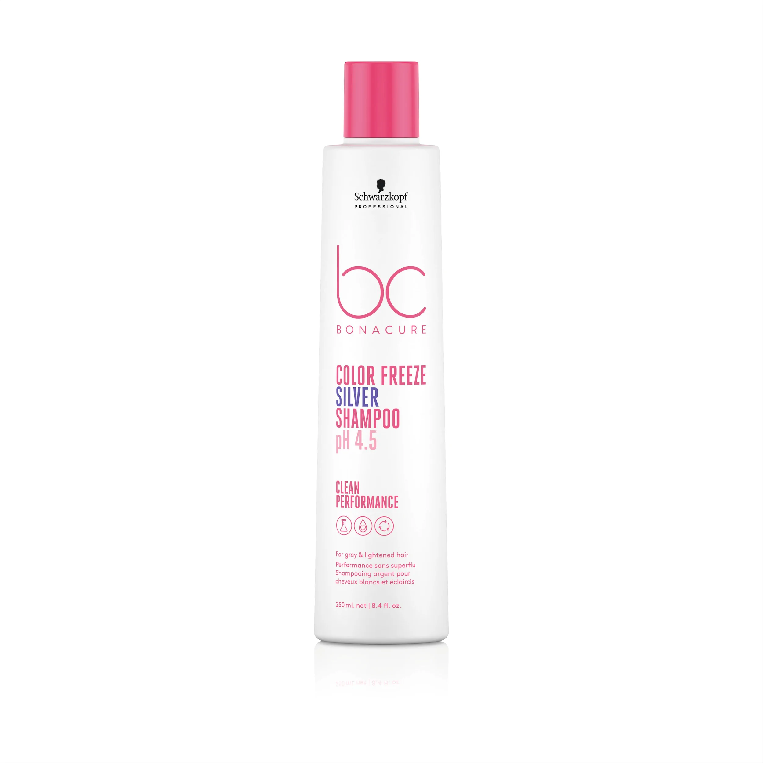 Pigmenterad schampo från Bonacure Color Freeze för gråa & uppljusade hår. Bidrar till att neutralisera oönskade varma undertoner och bevarar och återupplivar kalla färgriktningar. Sammansättningen hjälper till att återställa hårets optimala pH-värde och förhindrar att färgen mattas av. Vegansk* hårprodukt.