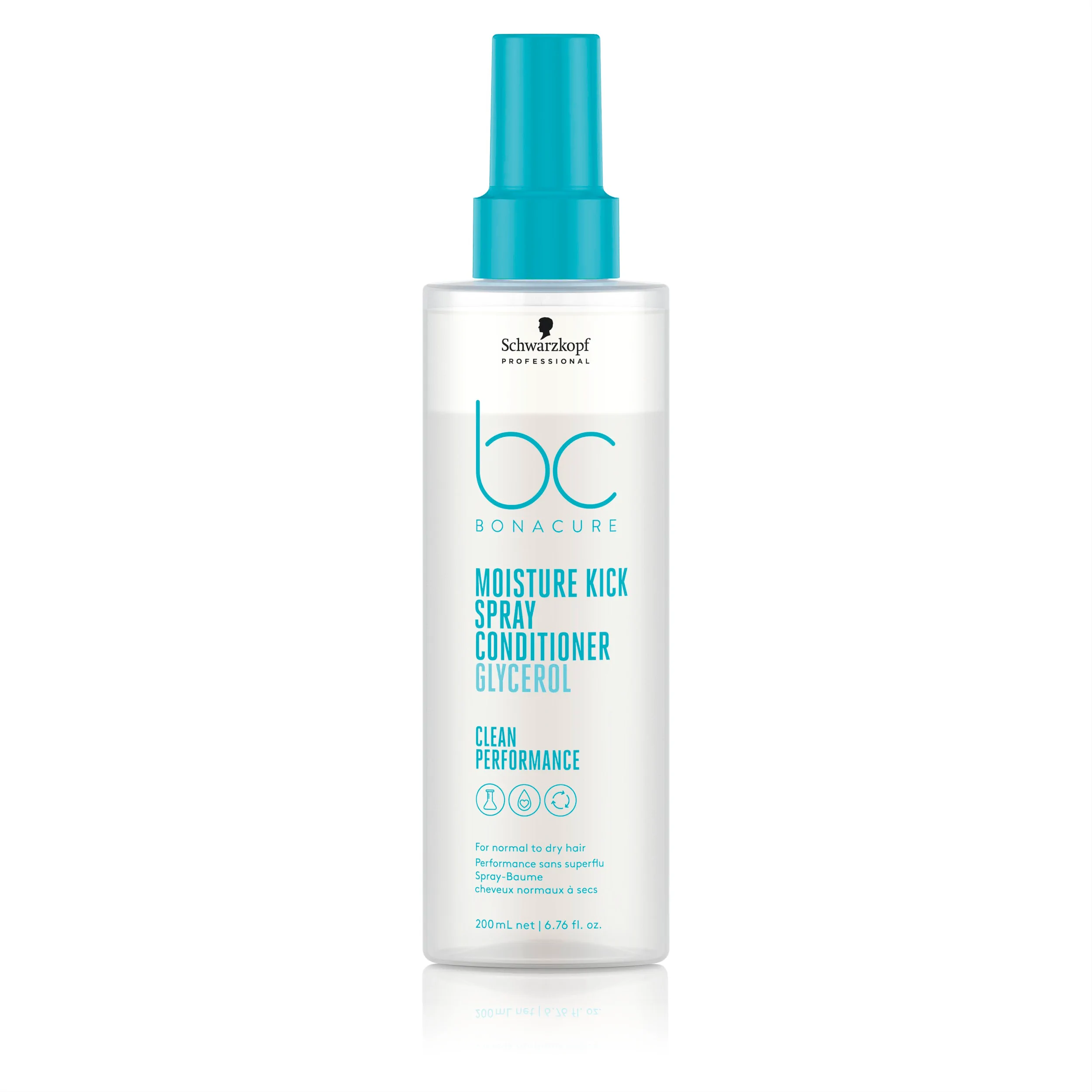 Ett omedelbart återfuktande och fjäderlätt spraybalsam från Bonacure Moisture Kick för normalt till torrt, skört eller lockigt hår. Fri från silikoner eller artificiella färgämnen, formulan hjälper till att bevara optimal fuktnivå för en lätt känsla i håret i upp till 48 timmar. Vegansk* hårprodukt.