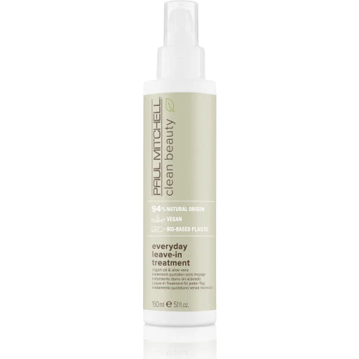 Clean Beauty Everyday Leave-in Treatment av Paul Mitchell är lämplig för alla hårtyper. Den är berikad med arganolja och aloe vera. Det perfekta tillägget till en ren livsstilsskönhet.