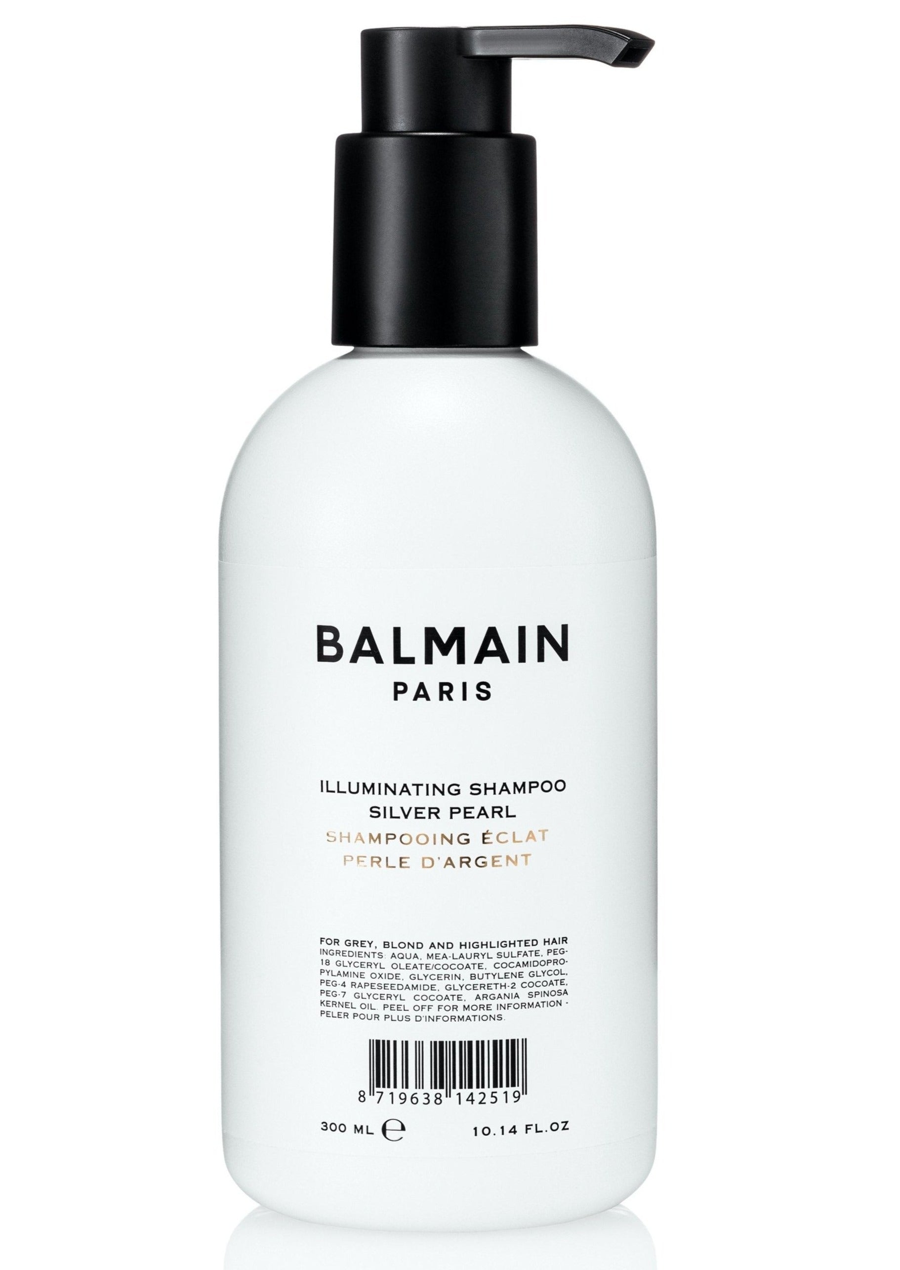 Blekt blont eller framhävt hår är mycket underhållsfullt och kräver kontinuerliga bättringar. För att motverka oönskade varma toner krävs djupt pigmenterade violettberikade produkter mellan färgtjänsterna. Balmain Illuminating Shampoo Silver Pearl förvisar mässing och lämnar håret rent och återfuktat. Det violetta pigmentberikade schampot motverkar oönskade varma (gula) toner. Silverschampot rengör skonsamt samtidigt som det ger optimal återfuktning till håret. Minskar uppkomsten av missfärgning och ger glans. Speciellt utvecklad för svalt blont eller grått hår. Infunderad med signaturblandningen av Argan Elixir och Silk Protein för att reparera håret inifrån.