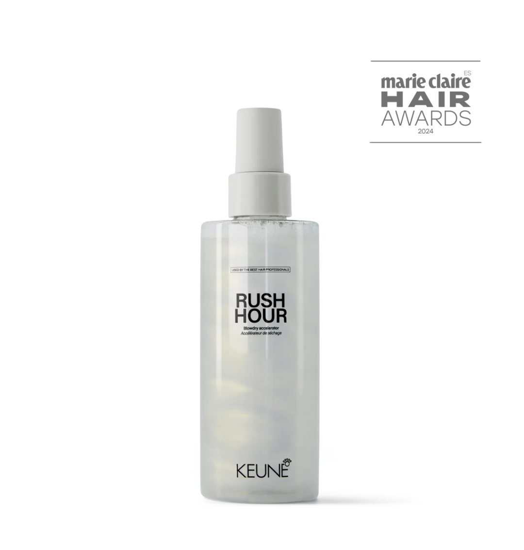 Keune Rush Hour 200ml är din nya bästa vän för snabbare och mer effektiva föningar. Denna fönaccelerator minskar torktiden avsevärt samtidigt som den tillför viktlös volym och strålande glans. Med den integrerade Bond Fuser Technology skyddar och stärker Rush Hour ditt hår genom att bevara befintliga disulfidbindningar och skapa nya, vilket bibehåller hårets integritet och styrka. Rush Hour erbjuder värmeskydd upp till 230°C (446°F), vilket säkerställer att ditt hår förblir friskt och starkt även vid hög värme. Den härliga doften av Midnight Blossom ger en lyxig känsla, och produkten kan enkelt kombineras med andra stylingprodukter för extra stadga och glans. Perfekt för dig som vill ha ett snabbt, effektivt och professionellt resultat varje gång du fönar håret.