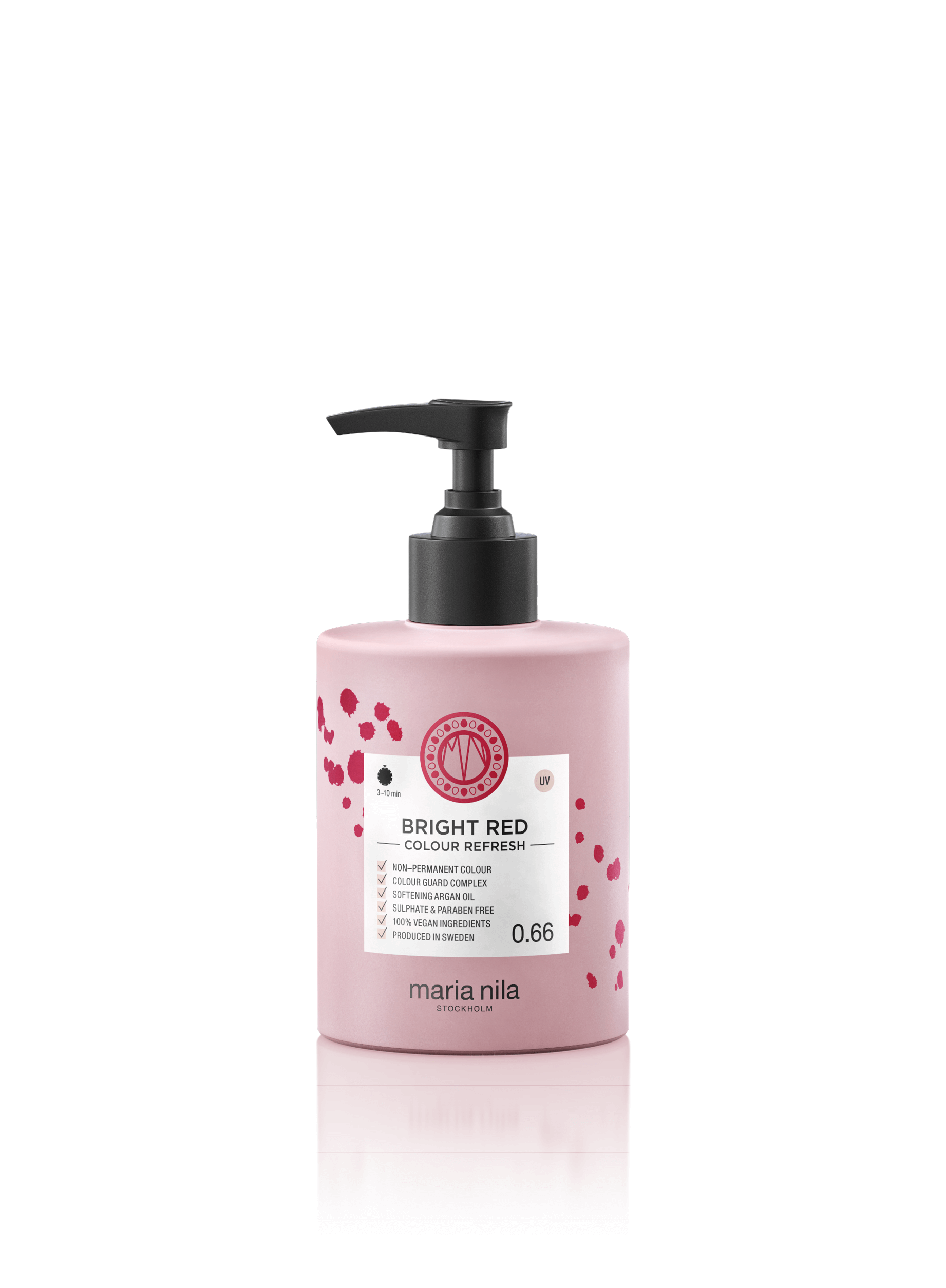 Användning: Tvätta ditt hår med schampo, skölj ur ordentligt och torka håret med en handduk för att förbereda håret inför inpackningen. Använd handskarna och applicera Colour Refresh jämnt i hela håret eller de delar av håret du vill färga. Låt verka i 3-10 minuter beroende på önskad intensitet. Skölj med vatten för att få bort överflödiga färgrester och avsluta med balsam. Färgen tvättas succesivt ut ur håret och sitter kvar i mellan 4-10 tvättar beroende på hårkvalitet och hårfärg. Kom ihåg att alltid meddela din frisör om du använt Colour Refresh eftersom man inte ska bleka håret direkt efter en behandling med Colour Refresh.