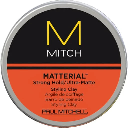 MITCH® MATTERIAL™- Styling Clay av Paul Mitchell är en kraftfull stylingpasta som gör håret tjockare och ger det en torr, ultramatt finish. Dessutom ger den textur och sätter stilen på plats. För en synligt stark hårstruktur och en modern look.