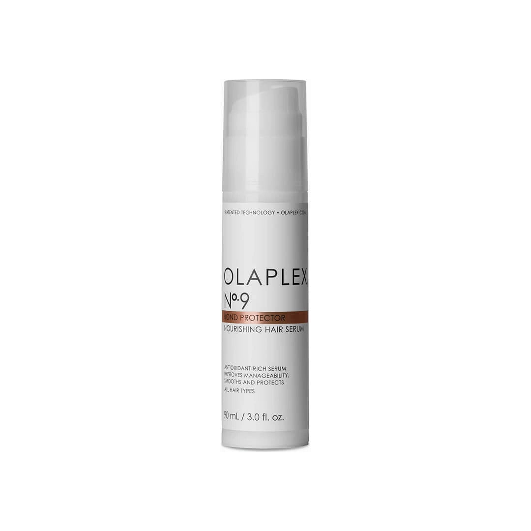 Olaplex nr. 9 Bond Protector Nourishing Hair Serum är ett skyddande antioxidantrikt stylingserum som hjälper håret att behålla sin form och skjuta bort skador från fria radikaler. Kraftfullt och antioxidantrikt rödalgextrakt kombineras med OLAPLEX Bond Building Technology™ i ett viktlöst, silikonfritt leave-in serum. No9 fungerar som en sköld mot föroreningar, värme från stylingverktyg och fria radikaler för att hindra att de skadar håret. Värmeskydd upp till 232 grader, Lämnar en lätt känsla med ett effektivt stylingminne, ger maximal glans och lyster. Minimerar friss, förkortar föntiden och skyddar ditt hår tills nästa tvätt.