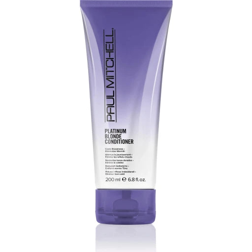 Platinum Blonde Conditioner™ från Paul Mitchell återfuktar det blonda, gråa och vita håret samtidigt som det neutraliserar gula toner. Ett färgförbättrande balsam med violetta pigment kyler den mässingsfärgade tonen samtidigt som den intensifierar glans och smidighet.