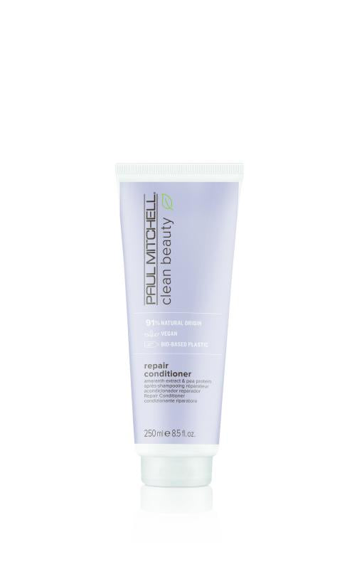 Clean Beauty Repair Conditioner från Paul Mitchell är idealisk för skadat och sprött hår. Amarantextrakt och ärtproteiner ingår i formeln. Clean Beauty Repair är lösningen för att bekämpa skador orsakade av styling, miljöpåverkan och stress. Den vårdar, reparerar, skyddar och ger näring till håret.