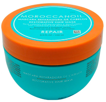 Moroccanoil® Restorative Hair Mask ska användas för skadat hår i behov av omedelbar reparation. Det är en 5-7 minuters vitaliserande behandling som återuppbygger håret och tillför proteiner till hårstrån som har skadats av kemiska behandlingar eller värmestyling. Den har en supereffektiv formel berikad med arganolja, sheasmör och reparerande proteiner som återställer håret på djupet så att det återfår sin spänst och byggs upp inifrån och ut.