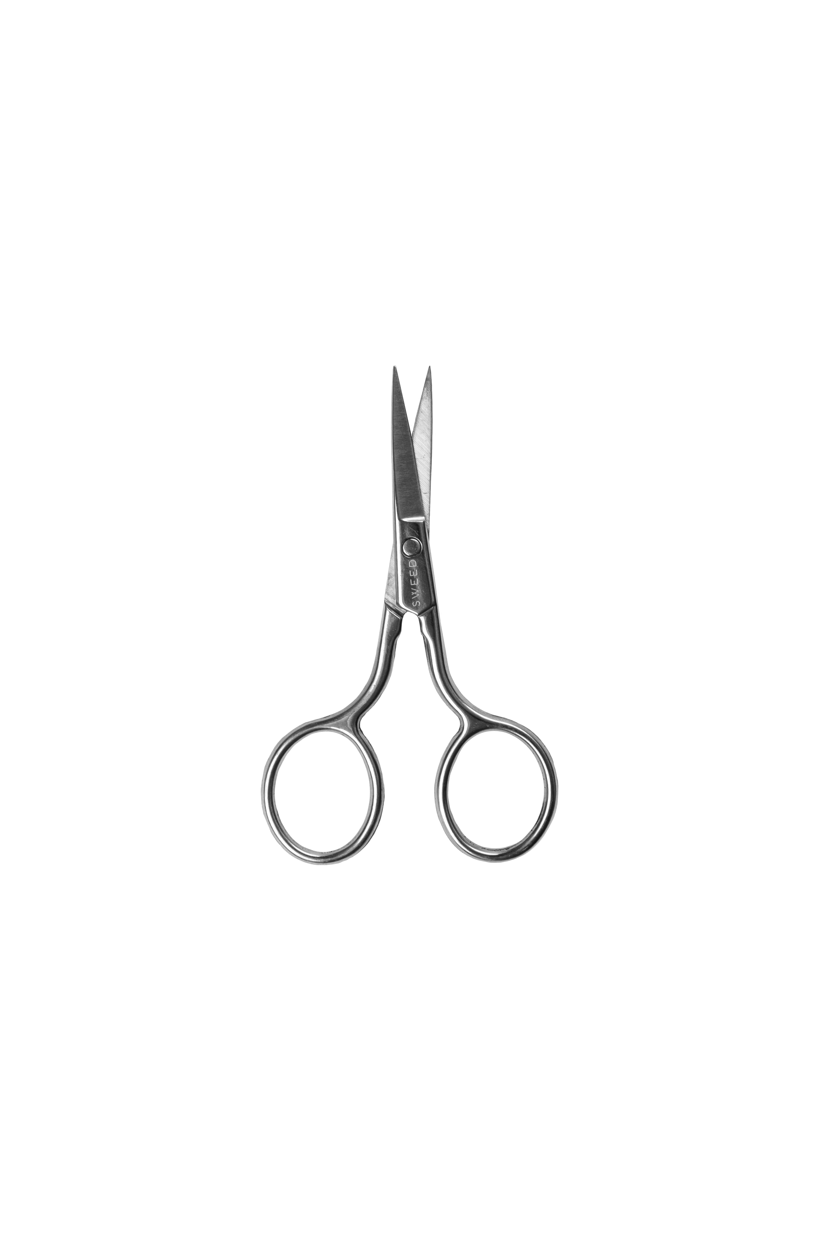Högkvalitativ, rak sax i rostfritt stål med ett supertunt blad för att trimma ögonbryn och lösfransar.