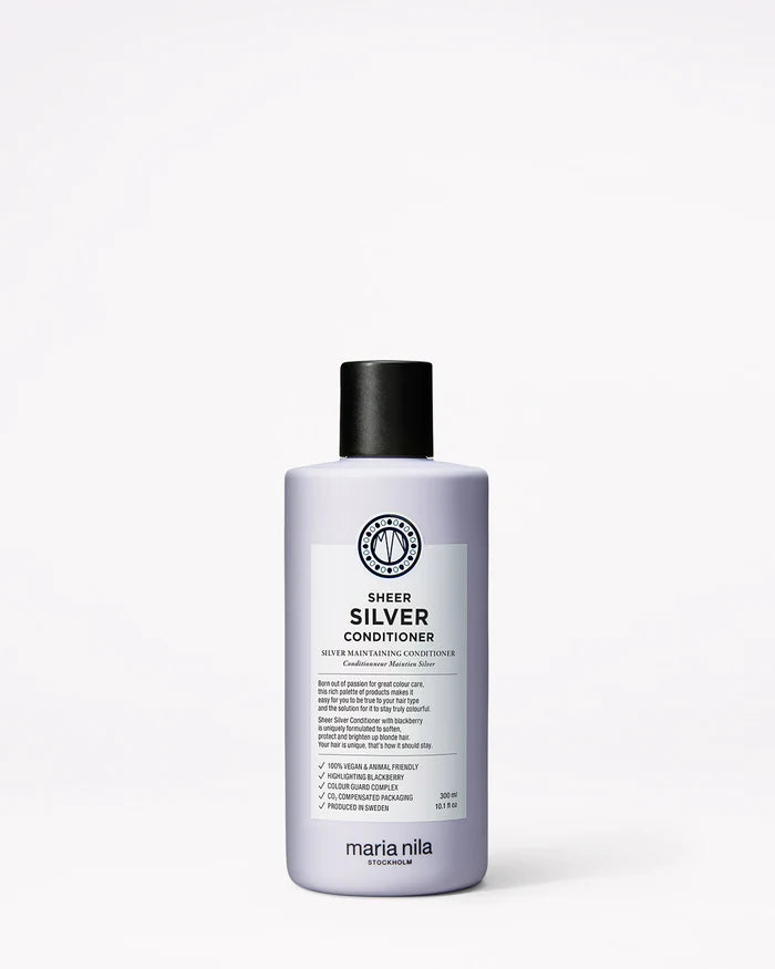 Ett utredande balsam för naturligt och färgat blont, vitt och grått hår som mjukgör, återfuktar och stärker hårets struktur. Violetta pigment och björnbärsextrakt neutraliserar guldiga toner och tillför glans som framhäver och ger liv till din hårfärg. Sheer Silver Conditioner har en fruktig och blommig doft med inslag av jasmin, apelsin och grapefrukt. Färgbevarande Colour Guard Complex skyddar ditt hår mot UV-strålning och fria radikaler.